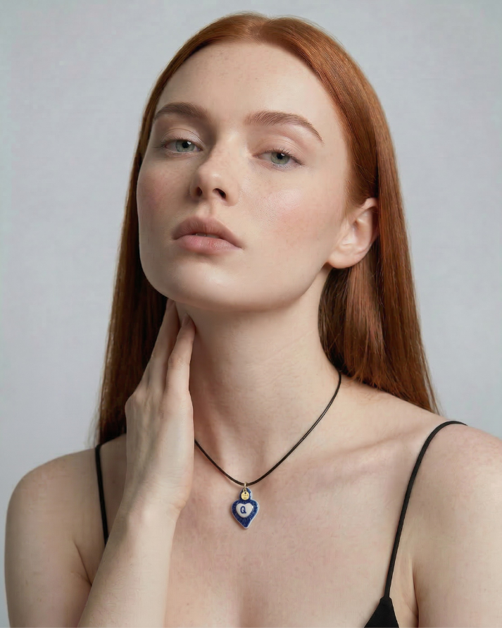 Charms - Ciondolo in Porcellana Cuore Blu - Lettera Q