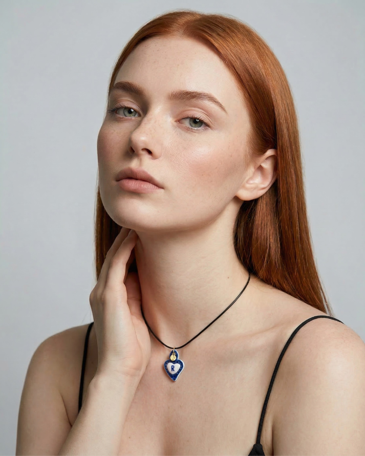Charms - Ciondolo in Porcellana Cuore Blu - Lettera R