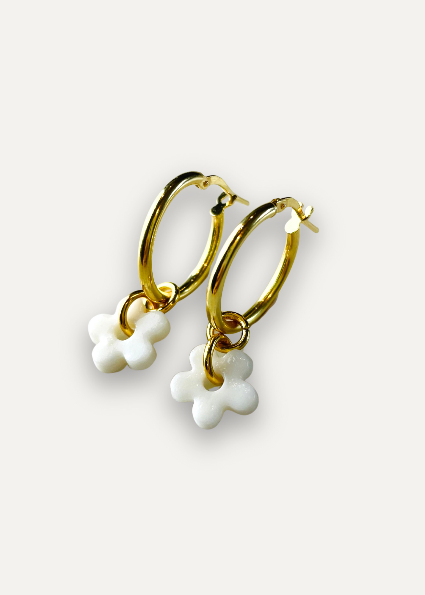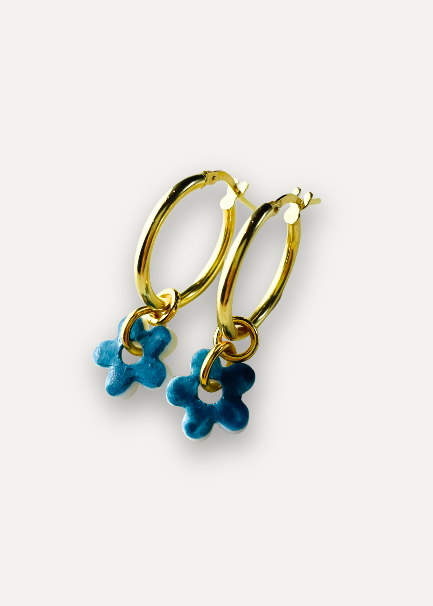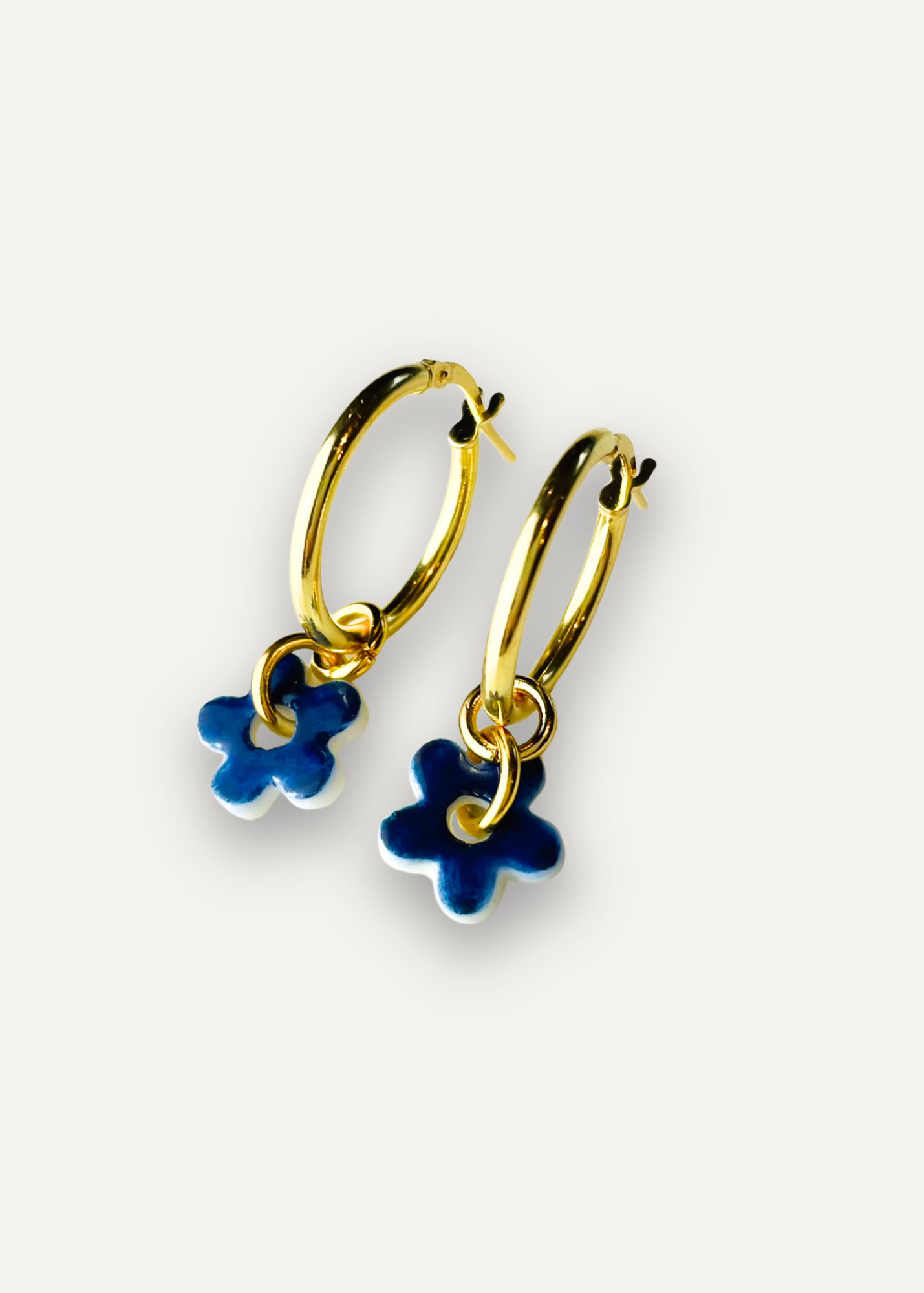 Orecchini a Cerchio Argento 925 - Pendente Fiore in Porcellana