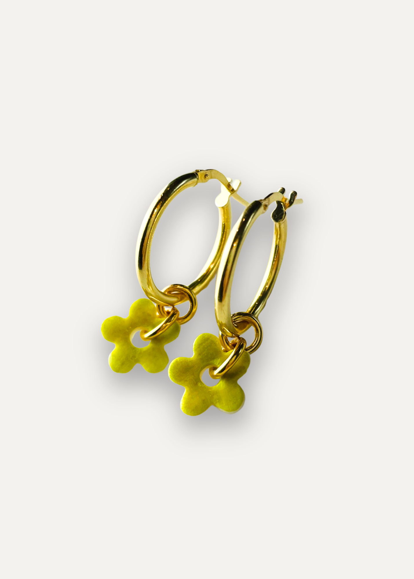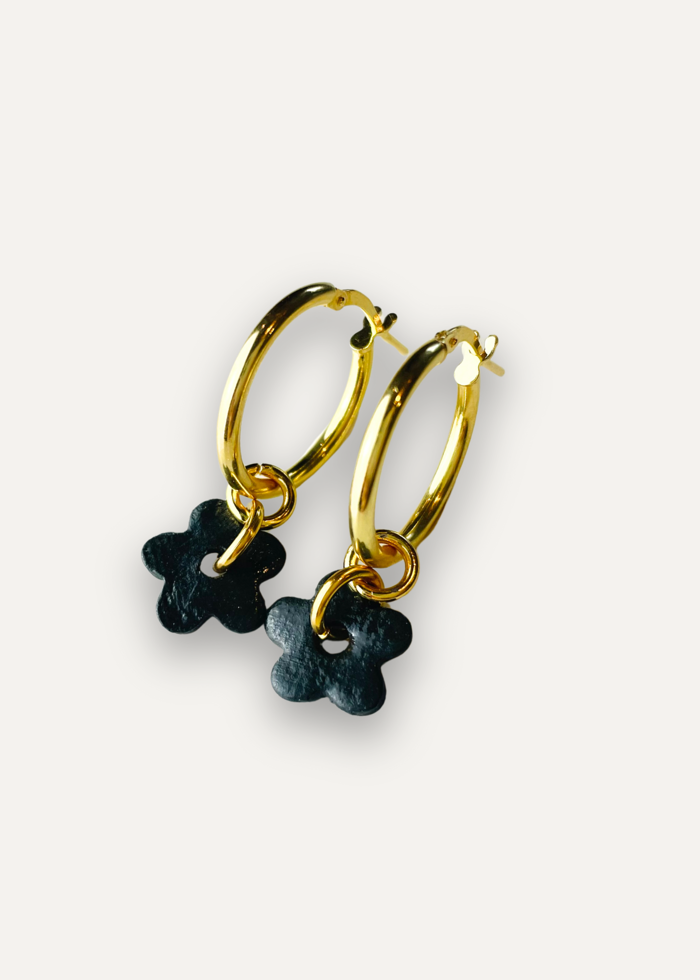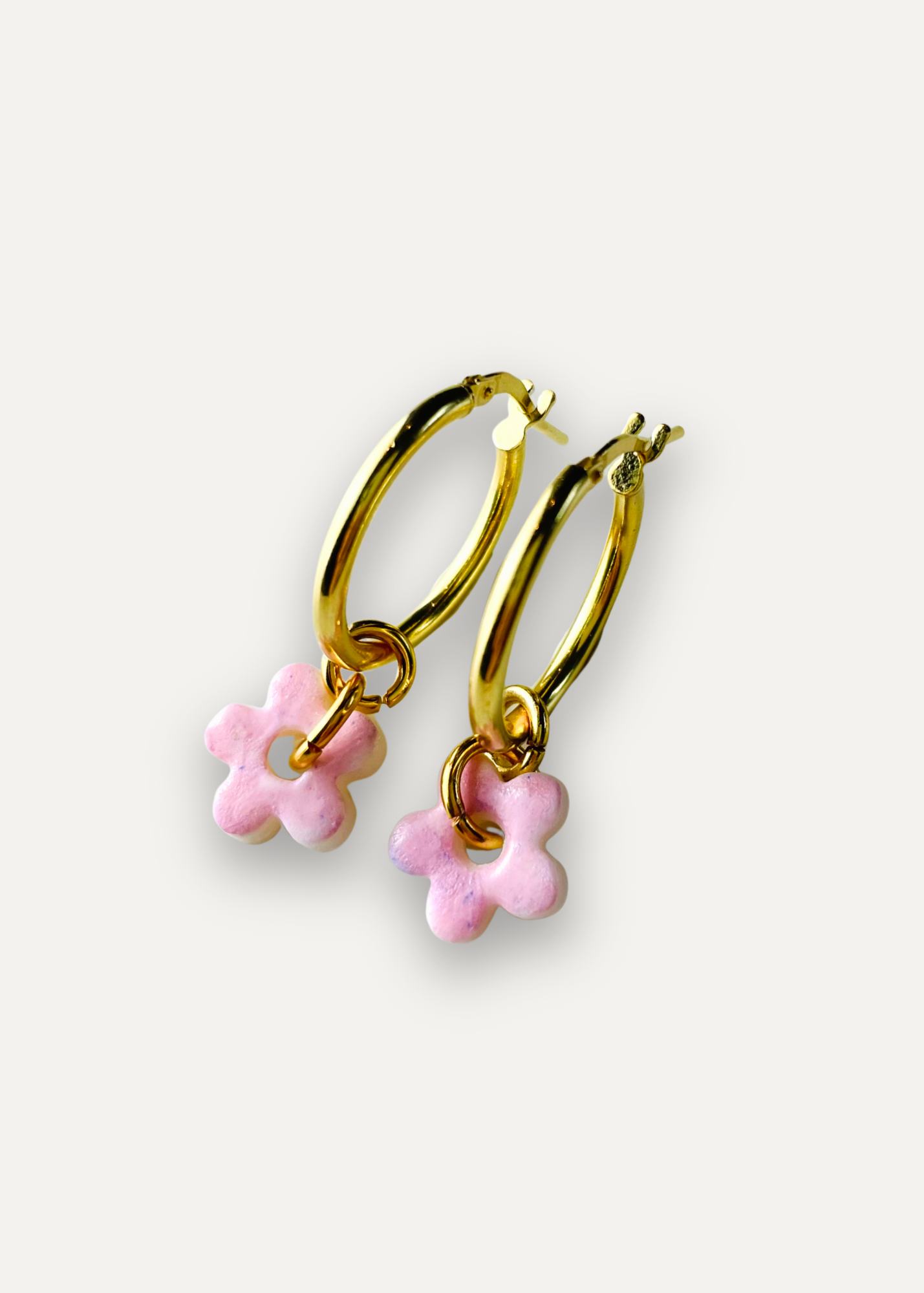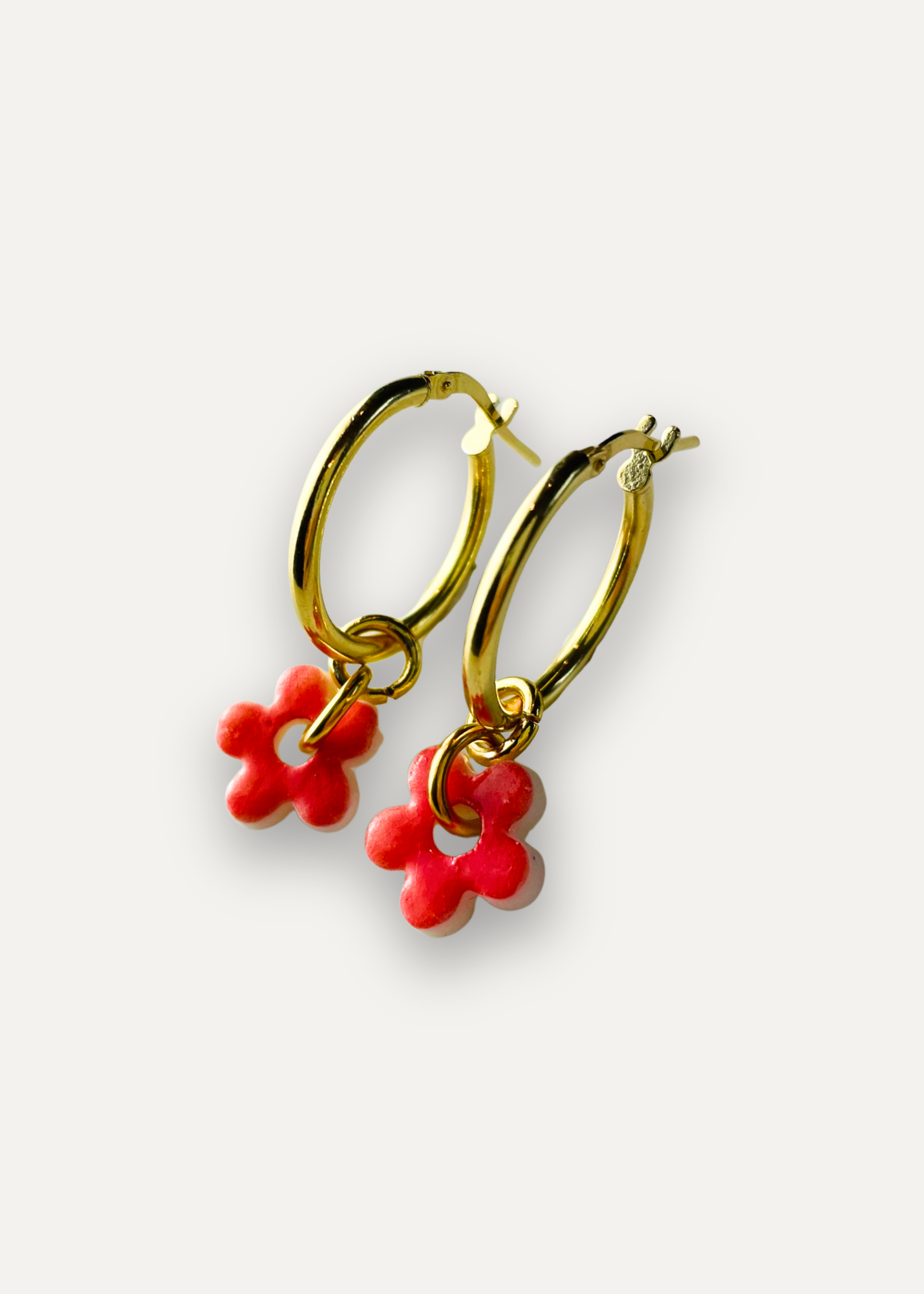 Orecchini a Cerchio Argento 925 - Pendente Fiore in Porcellana