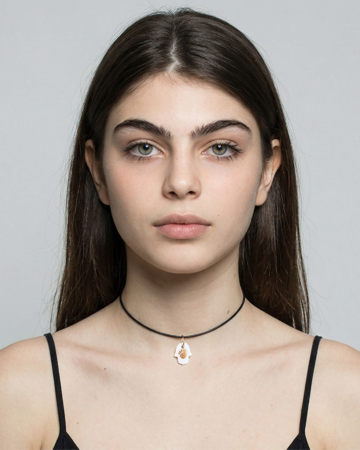 Un ciondolo unico a forma di Mano di Fatima, simbolo di protezione e forza spirituale. Questo amuleto, conosciuto per infondere bontà, gentilezza, serenità, e grazia nella tua vita, è realizzato artigianalmente con cura e passione.