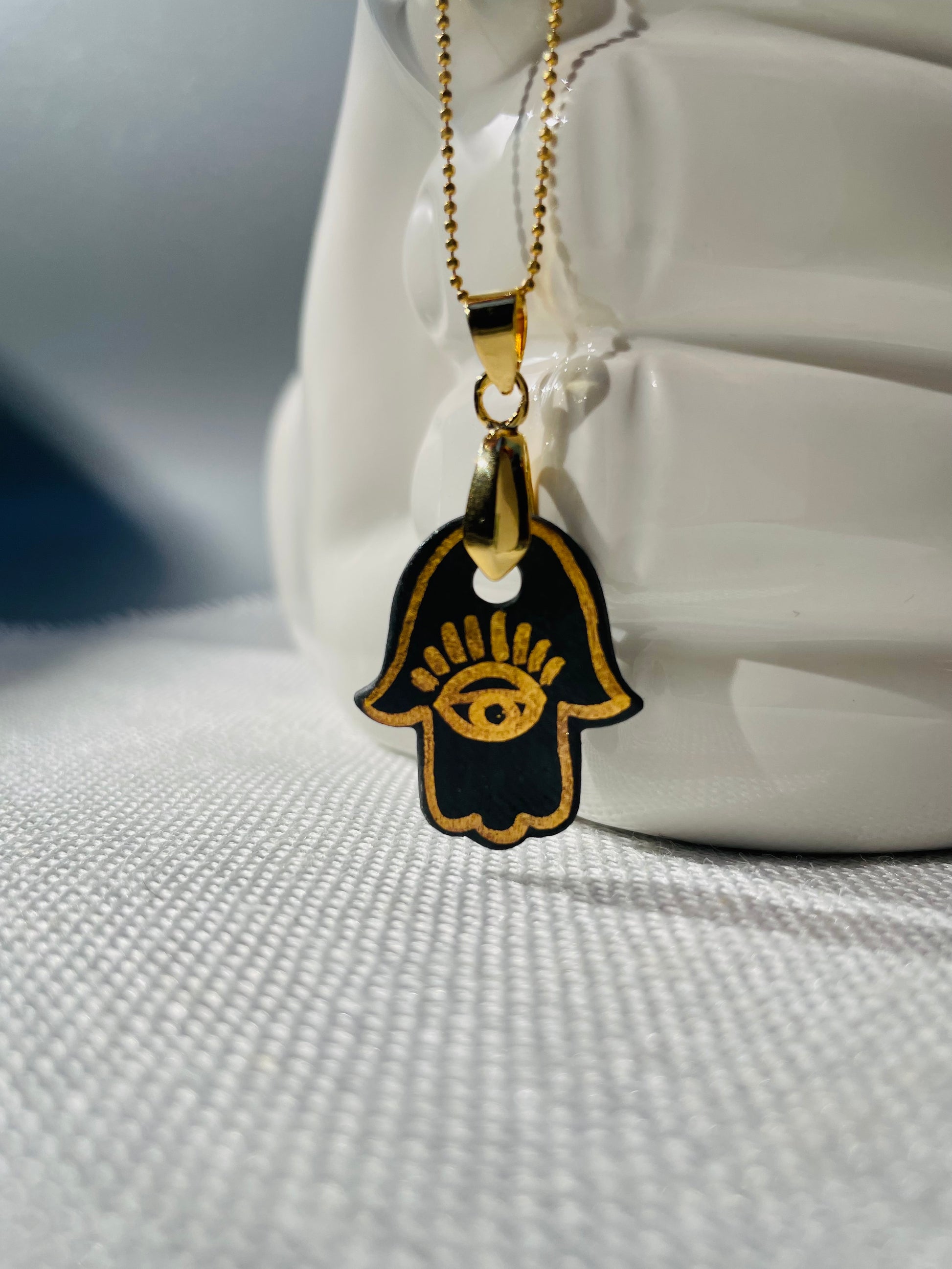 CIONDOLO: Mano di Fatima in Porcellana Nera