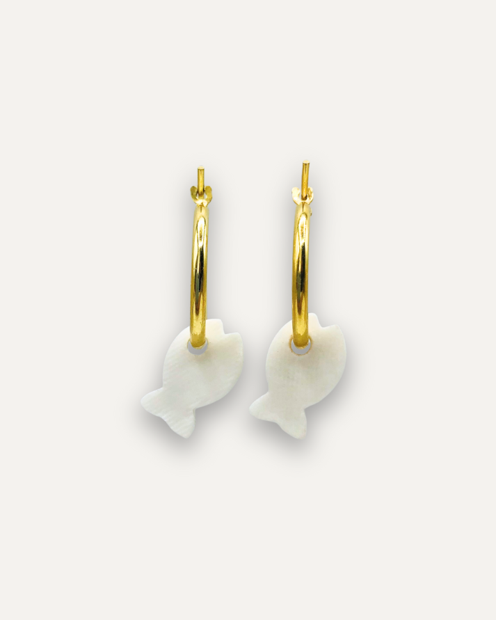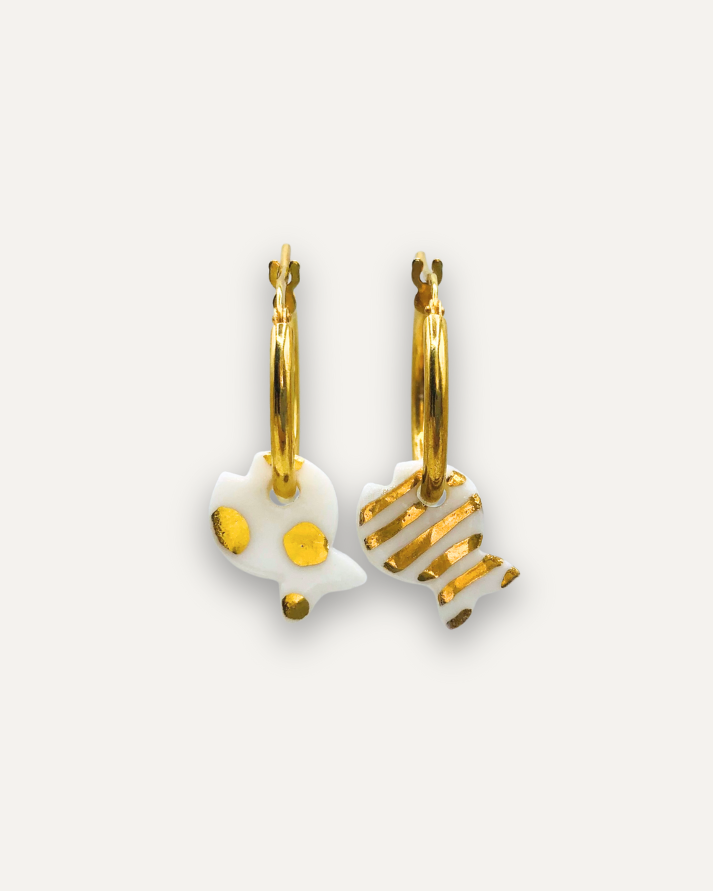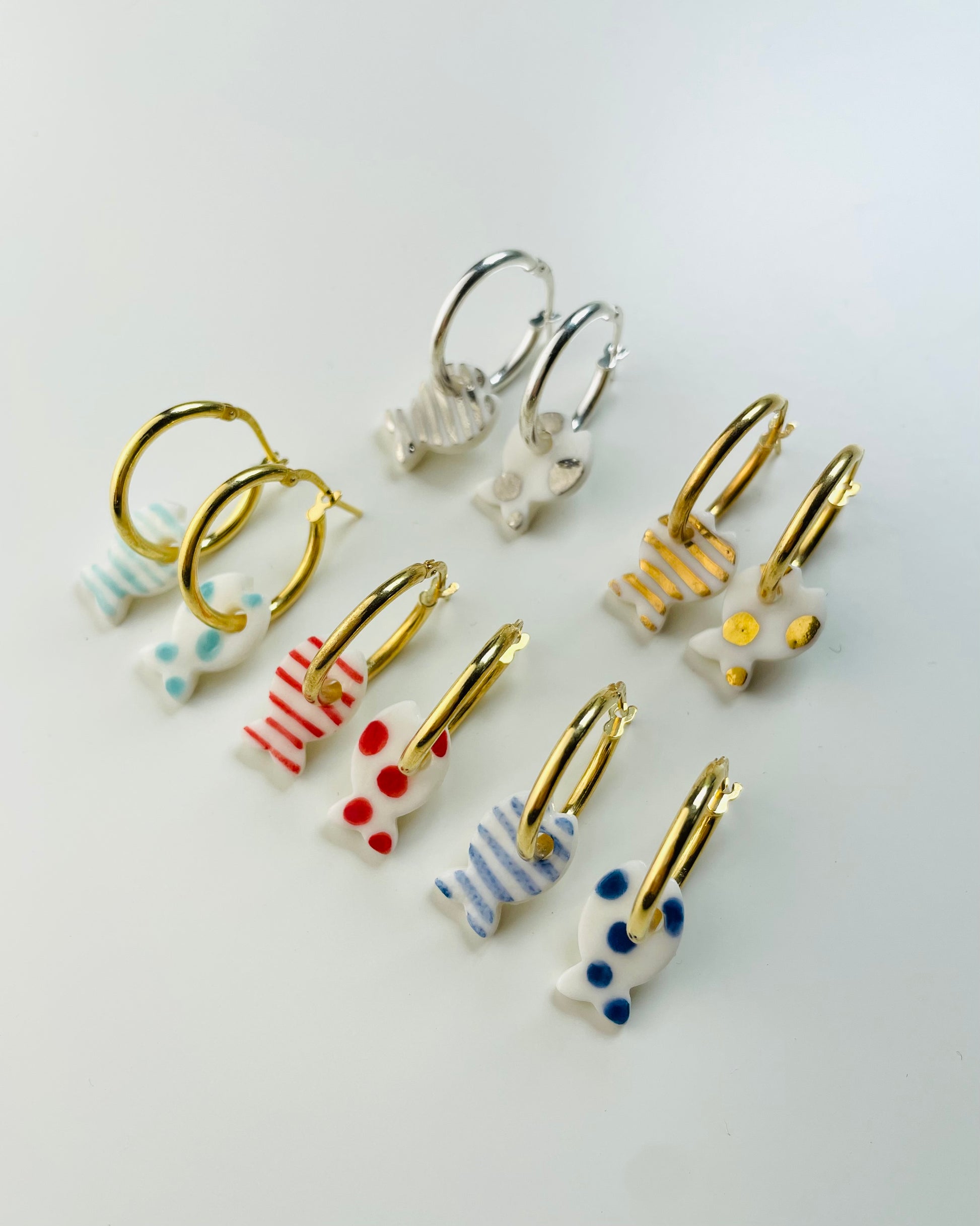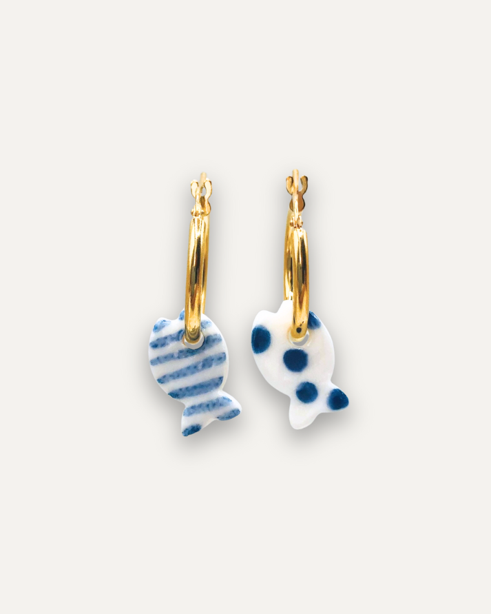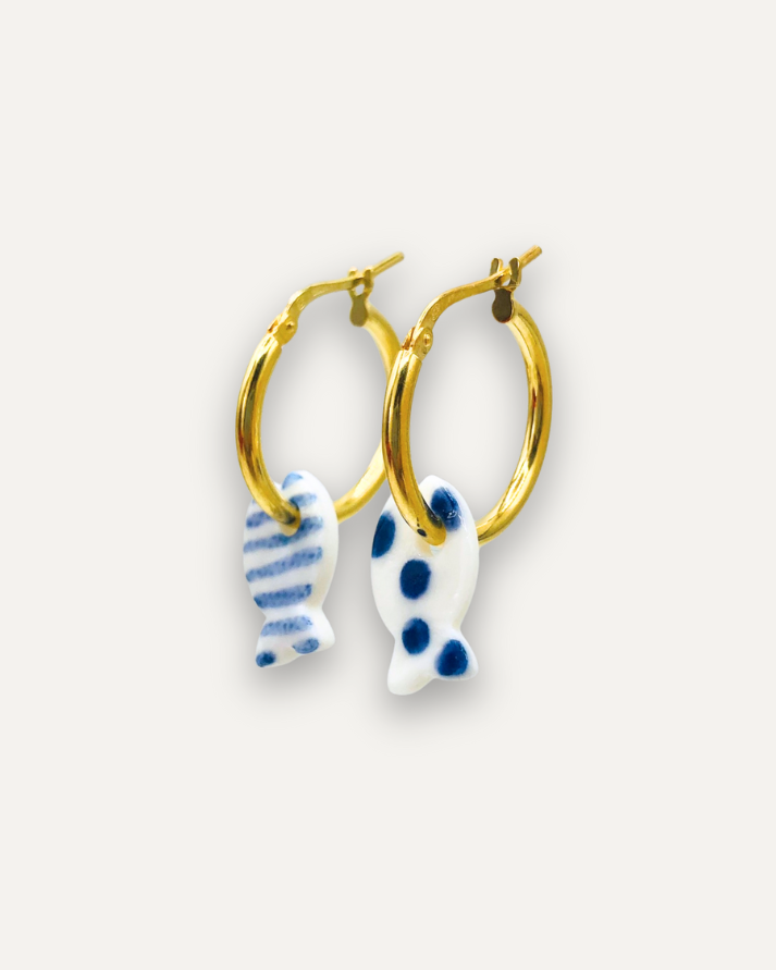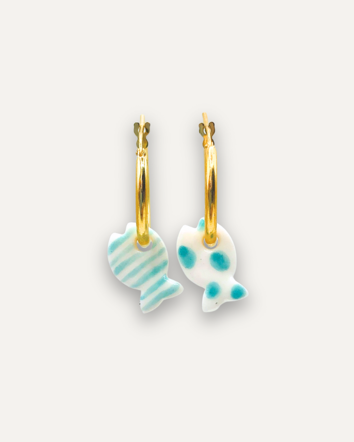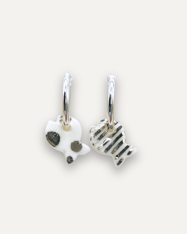 Orecchini a Cerchio - Argento 925 e Pendente in Porcellana Pesce a Righe