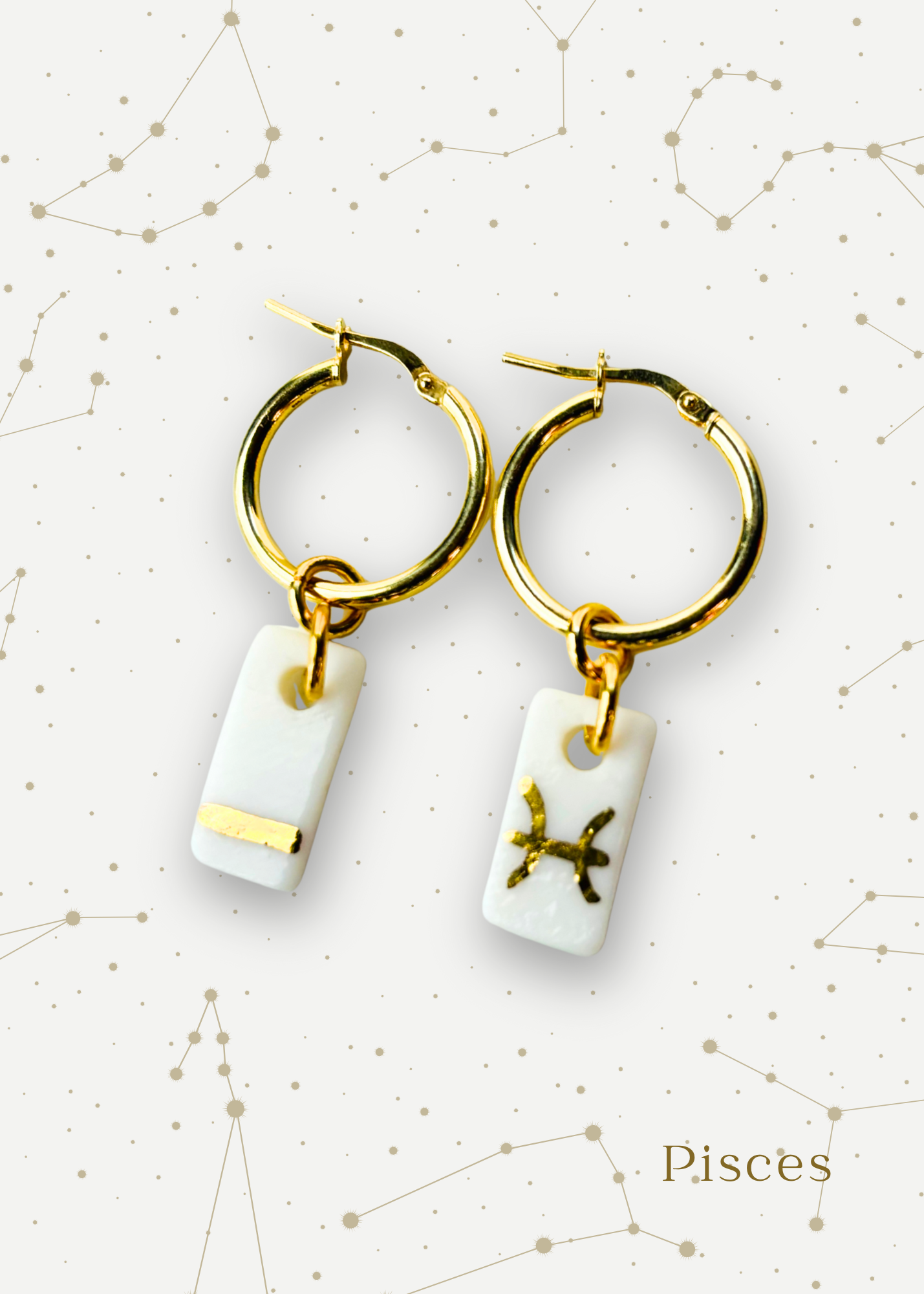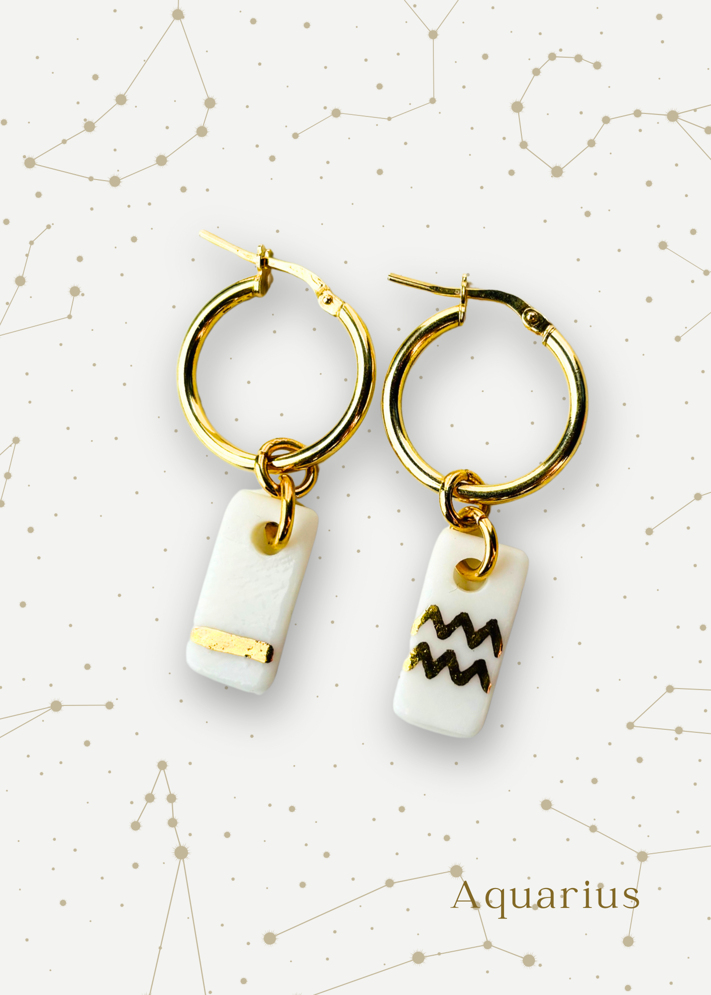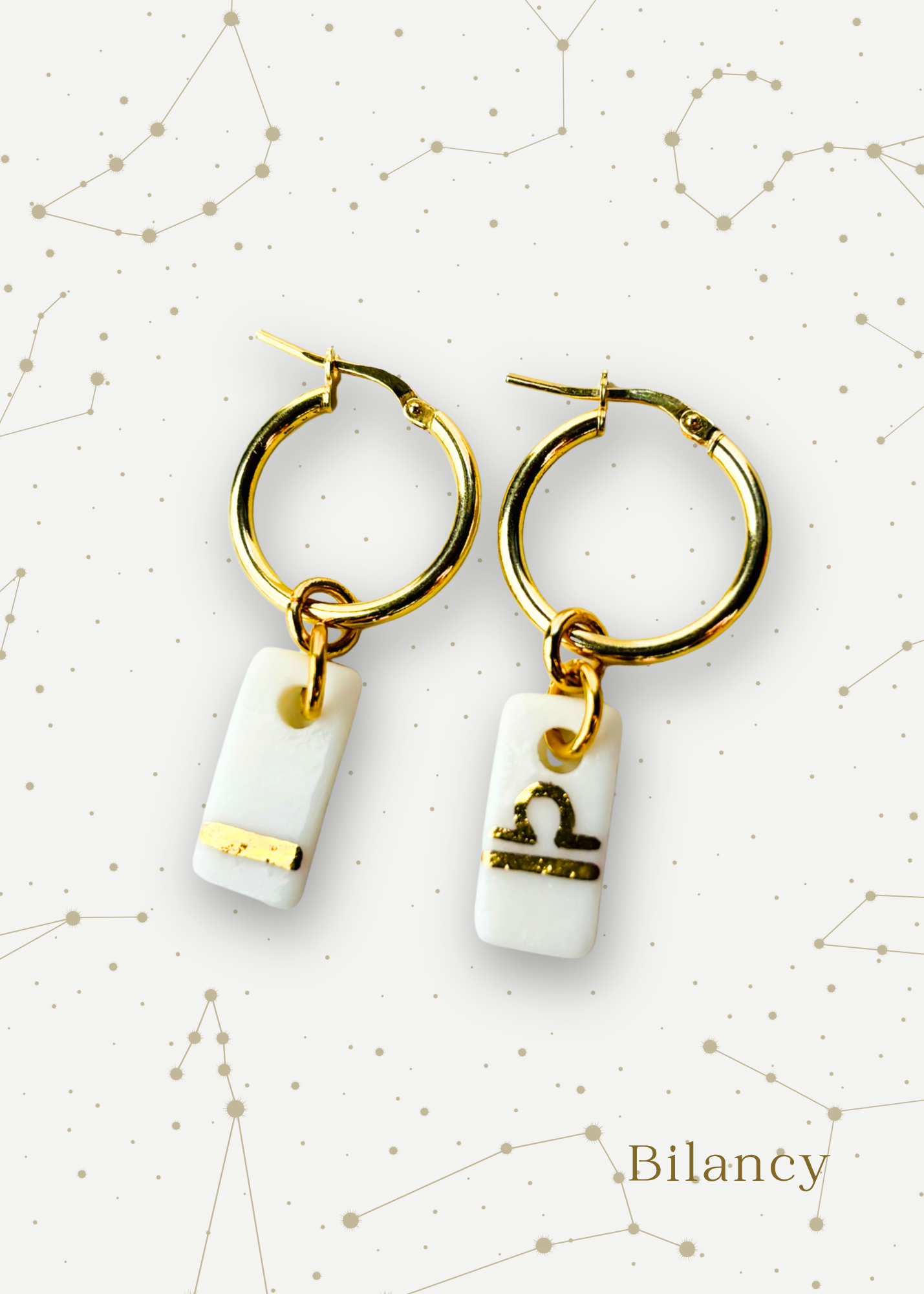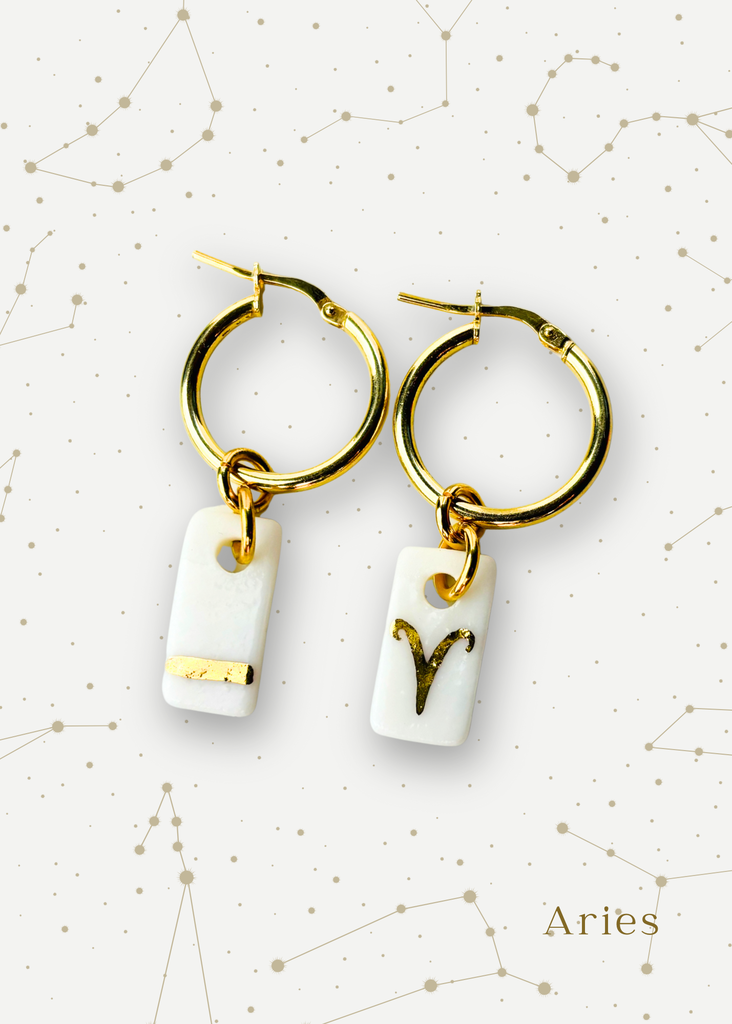Orecchini a cerchio - Zodiaco in Porcellana Bianca e Oro