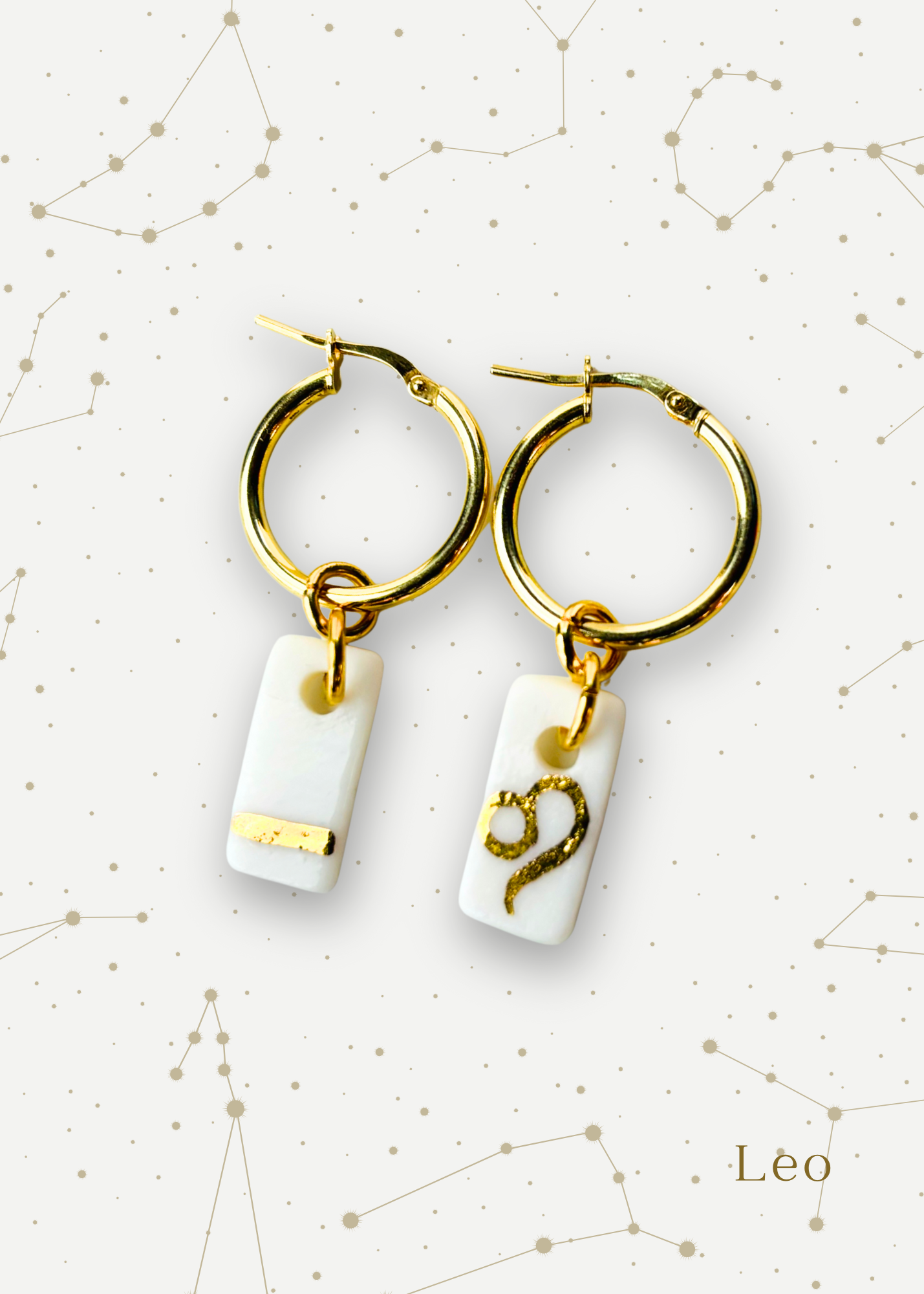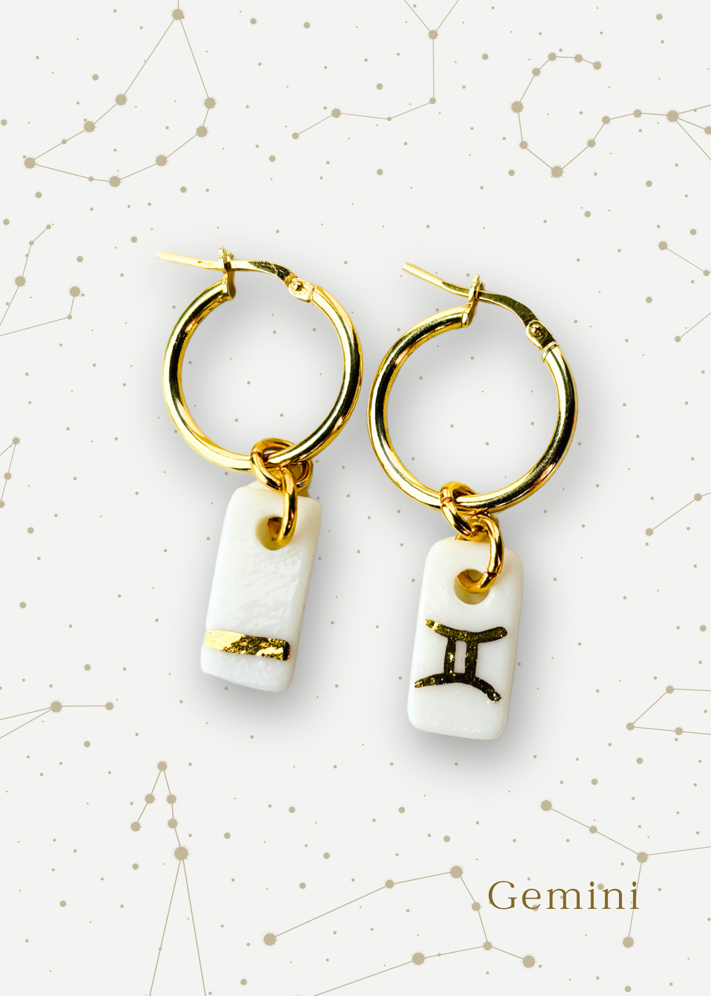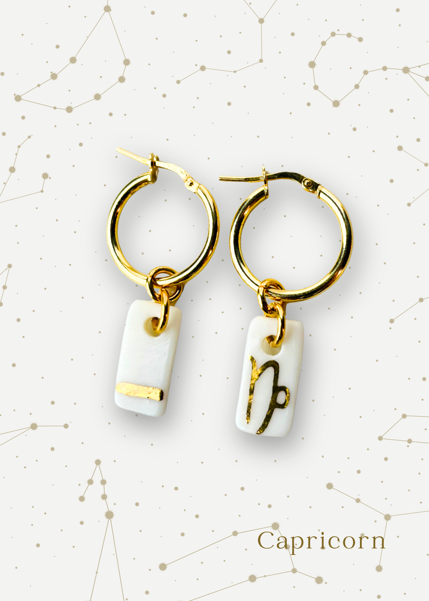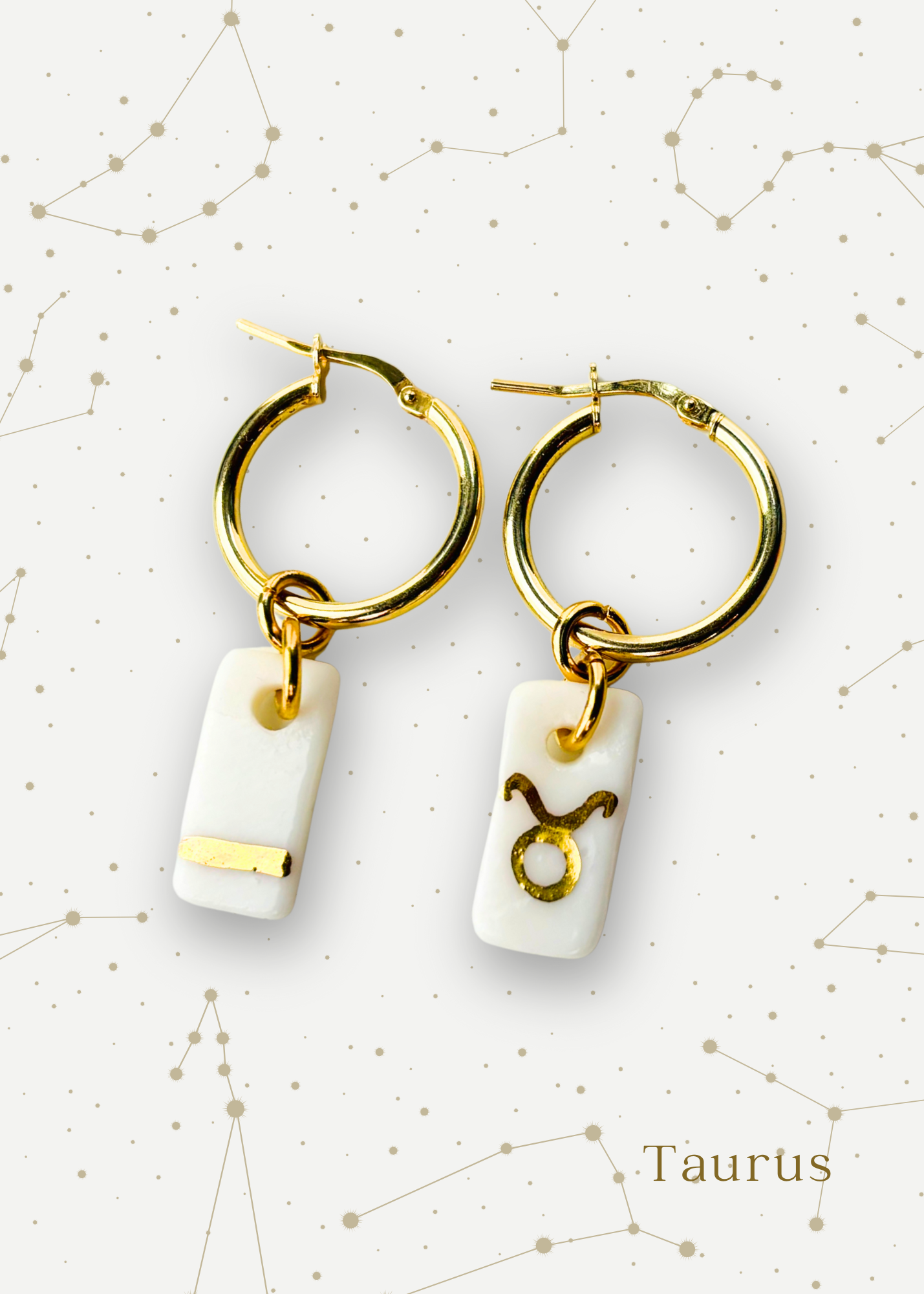 Orecchini a cerchio - Zodiaco in Porcellana Bianca e Oro