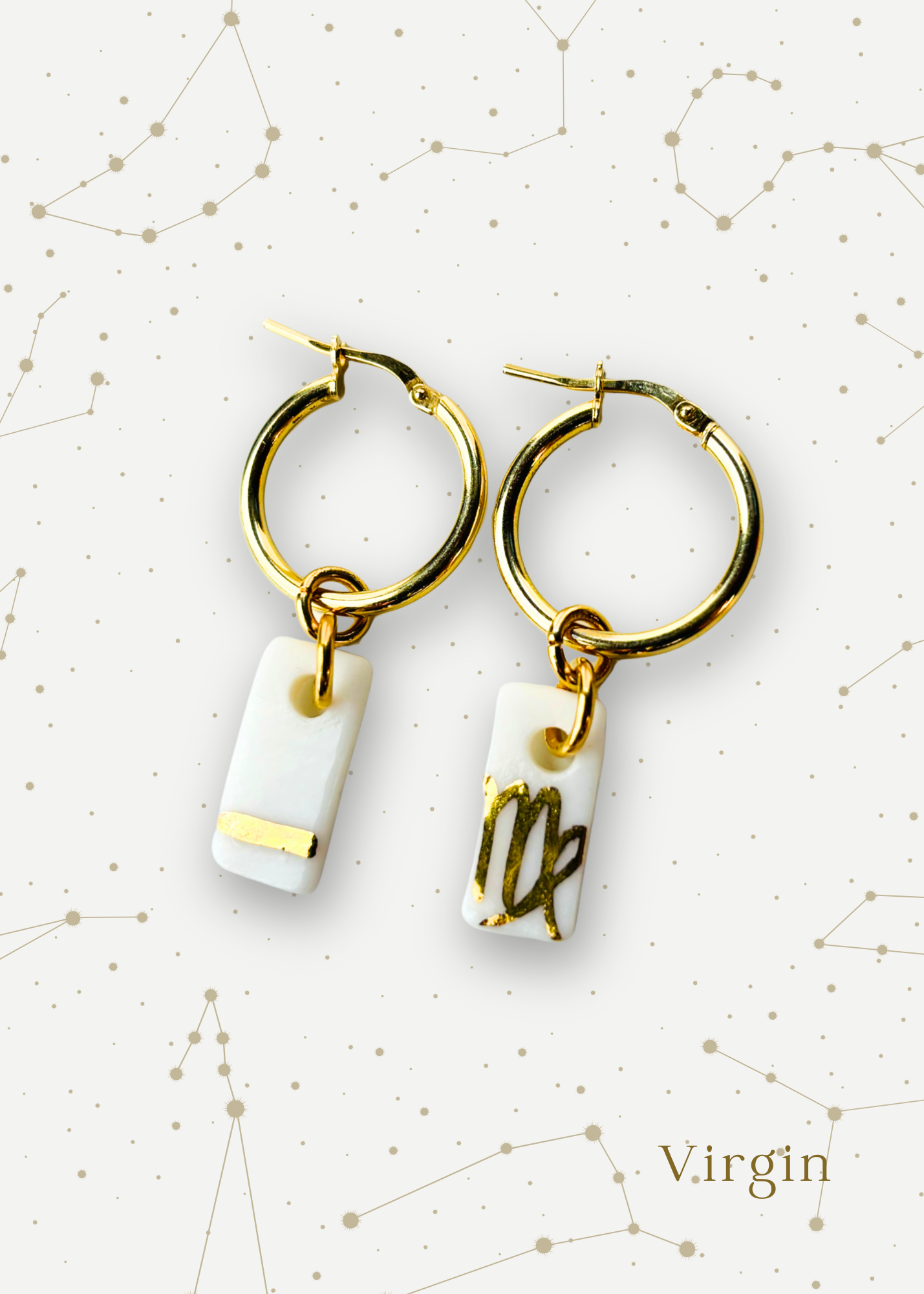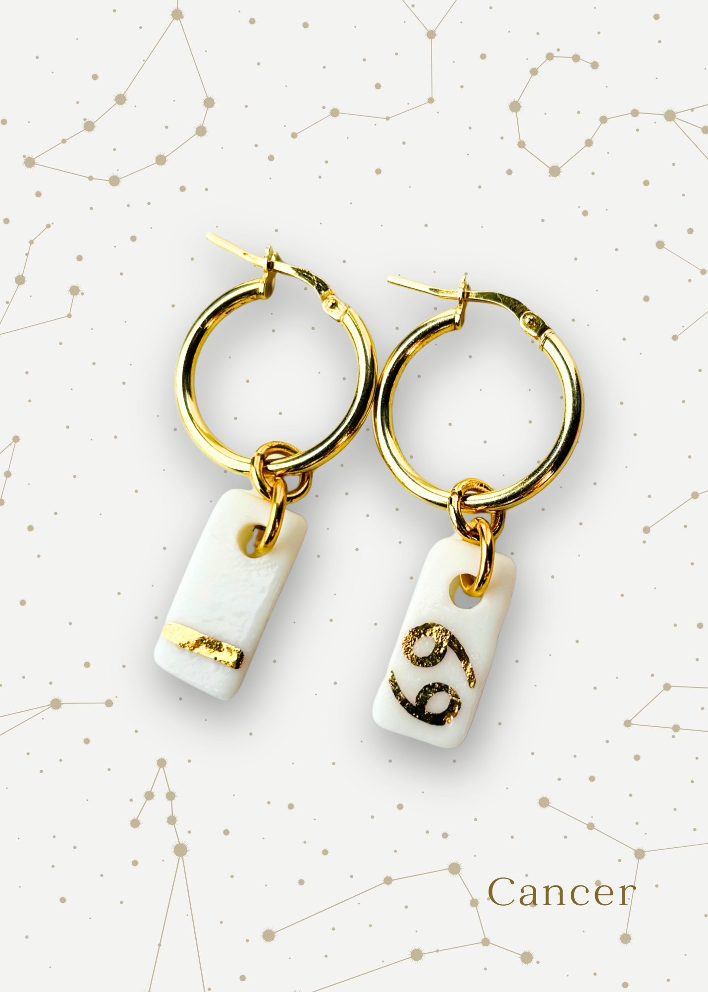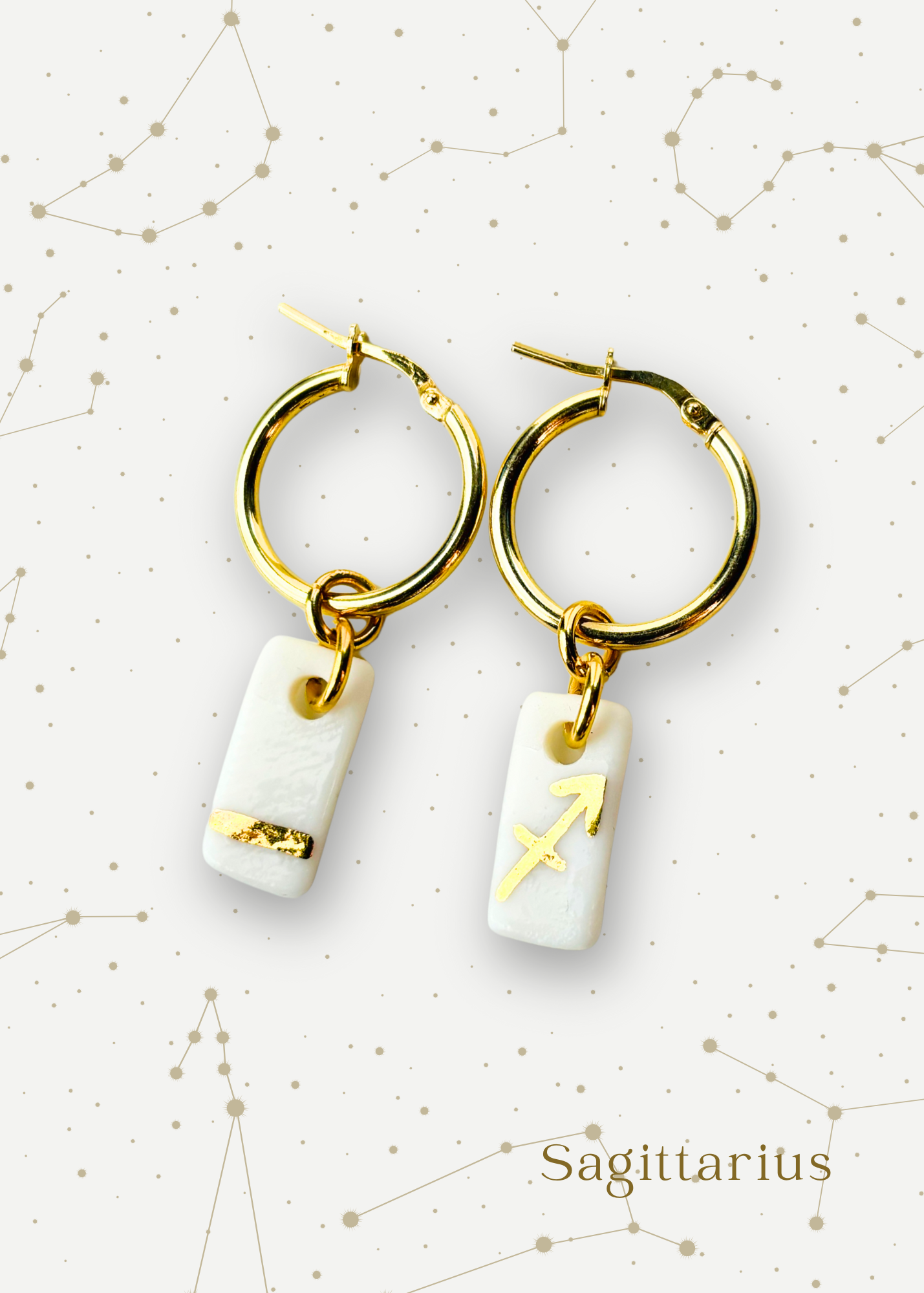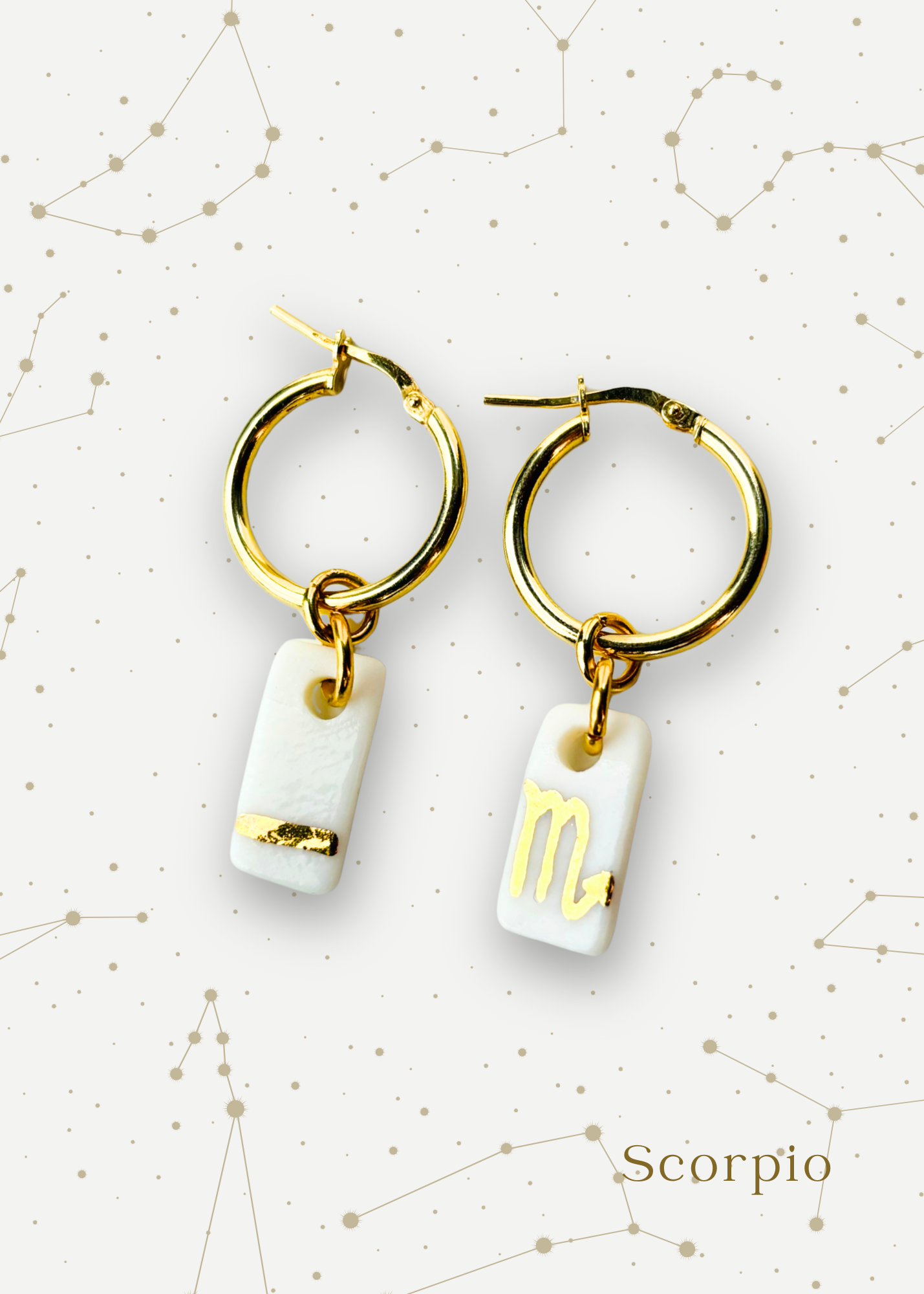 Orecchini a cerchio - Zodiaco in Porcellana Bianca e Oro